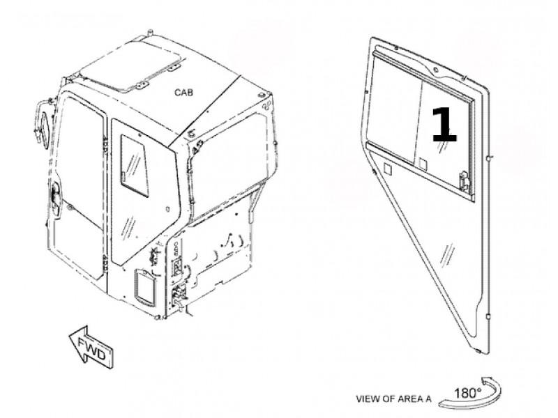 Стекло боковое за дверью сдвижное для мини-экскаватора CAT 308.5