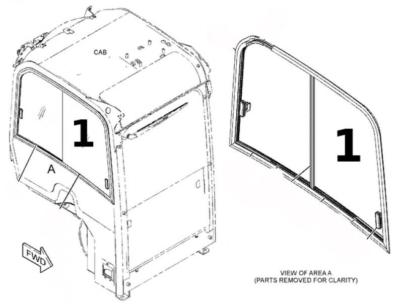 Стекло боковое правое сдвижное для мини-экскаватора CAT 301.8C