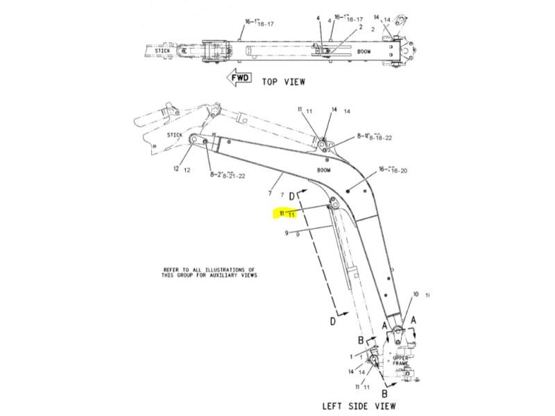 Палец гидроцилиндра стрелы ковша мини-экскаватора CAT