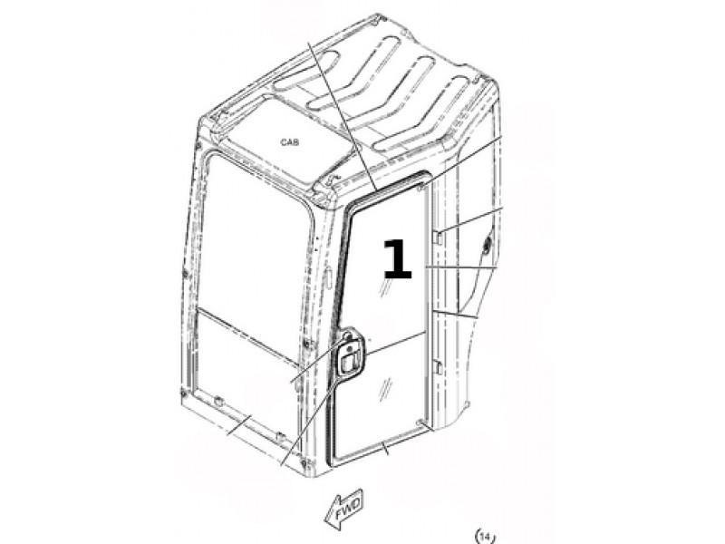 Стекло двери верхнее левое для мини-экскаватора CAT 303.5 305.5
